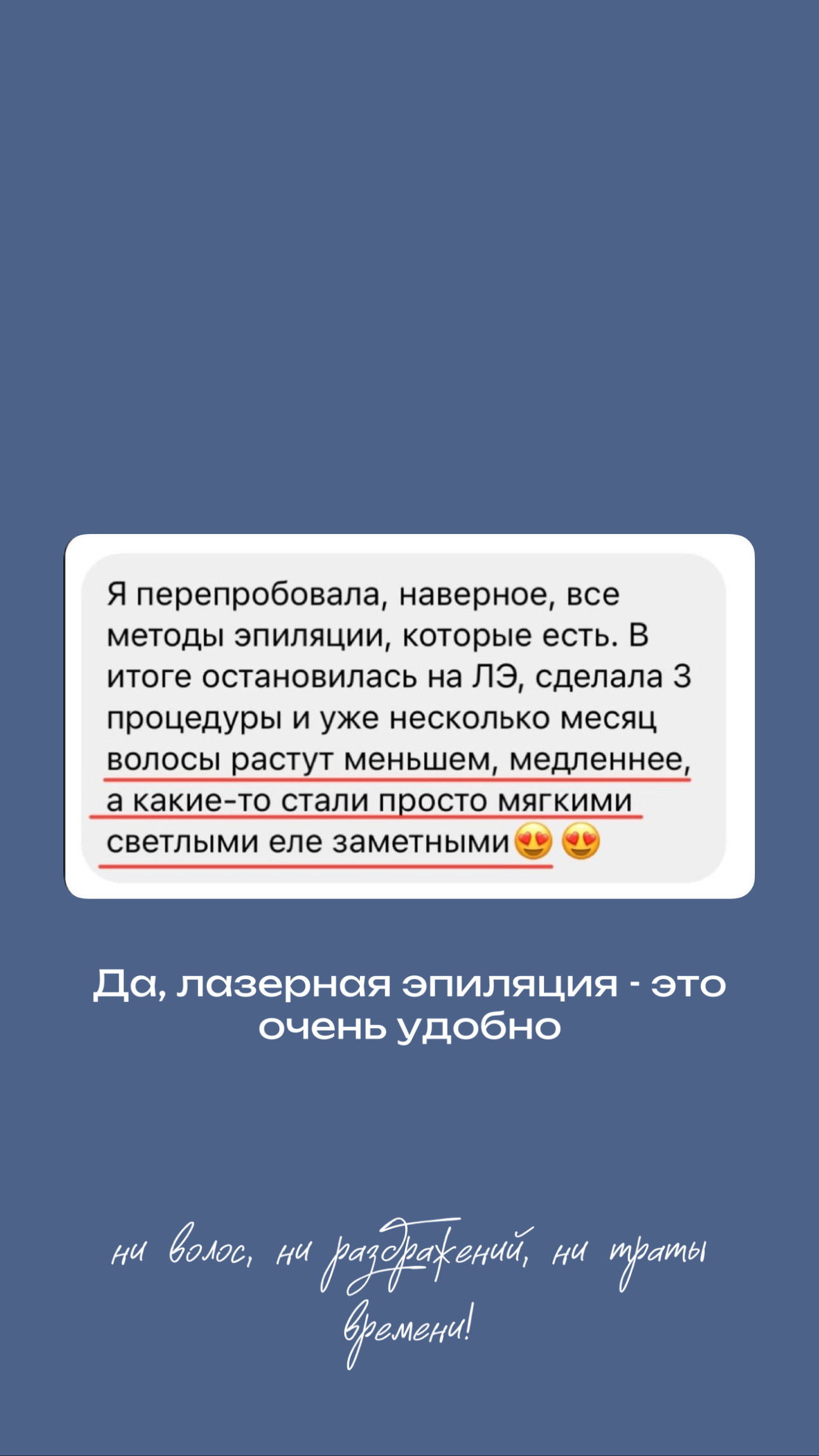 Клиент быстро понимает основные направления работы клиники: лазерная эпиляция, косметология и массаж. Это снижает когнитивную нагрузку и помогает пользователю быстро ориентироваться на сайте.